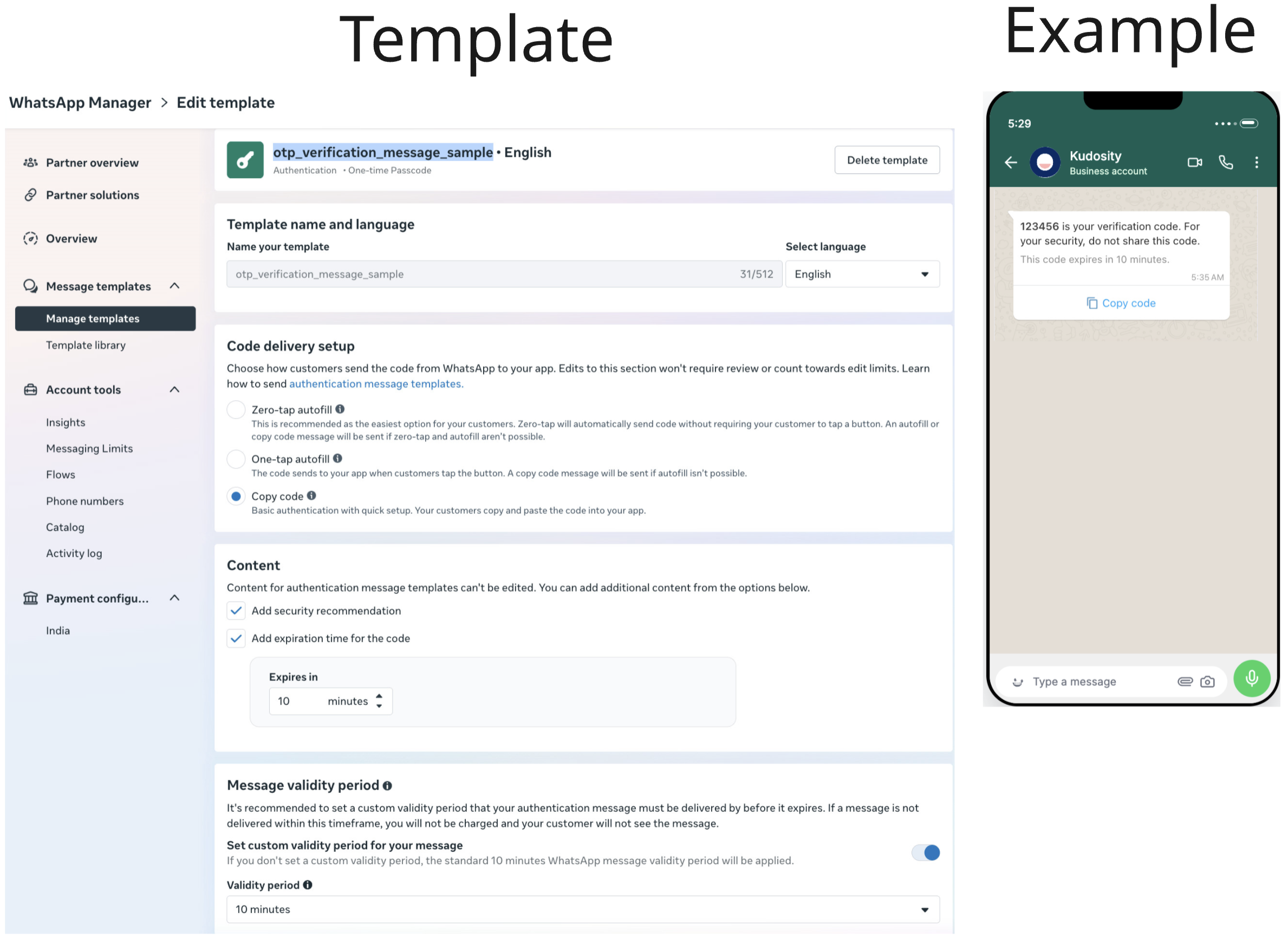 | Authentication | template | Yes | No | Strict OTP formatting rules |